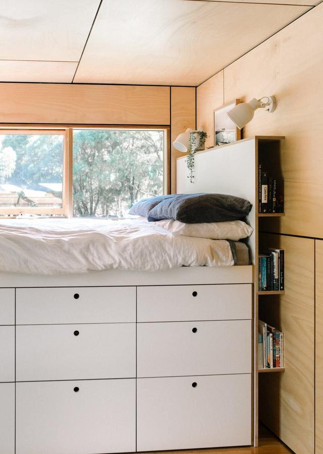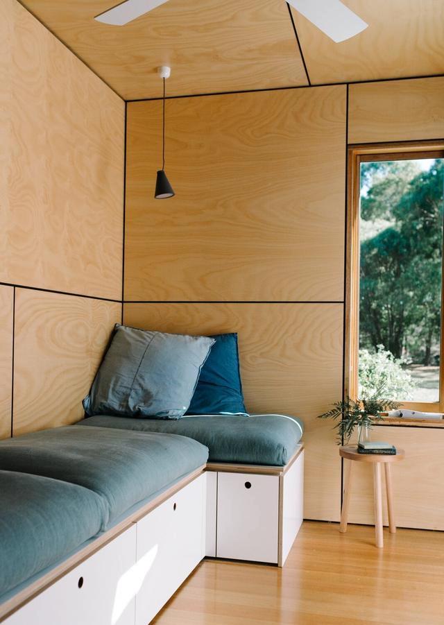 這對夫婦還想讓房子融入環境,選擇灰色的外部色調,這樣就能融入周圍的灌木叢中。內部,生態膠合板墻壁、天花板和塔斯馬尼亞橡木地板營造出溫暖和紋理,與光滑的外部覆層形成對比。