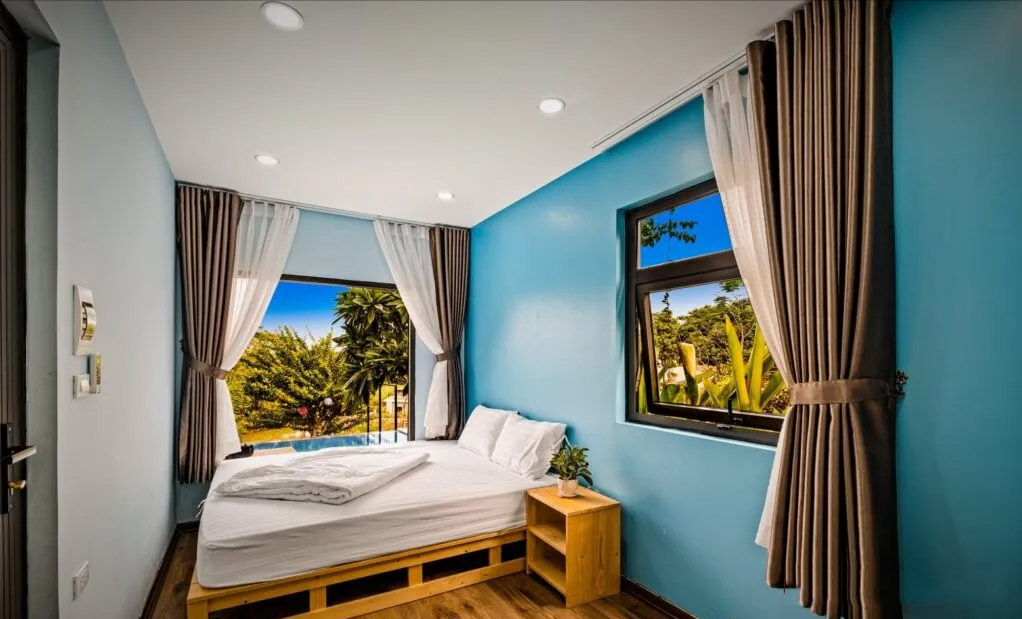 采用不同的鮮明色彩區分,每間臥室都開設了窗戶來透光和通風。