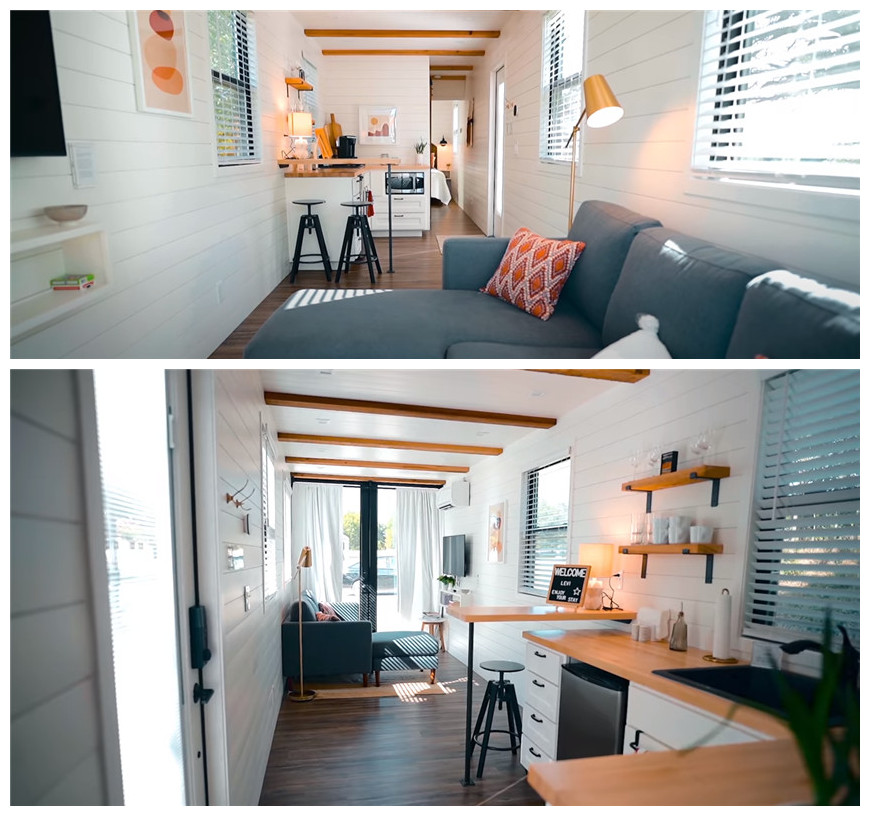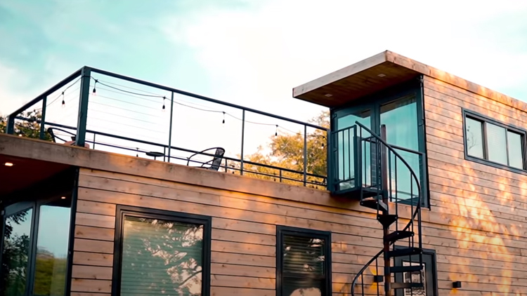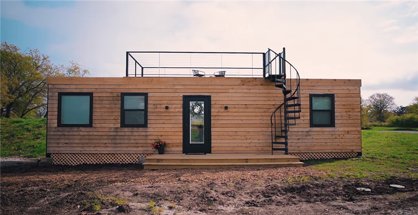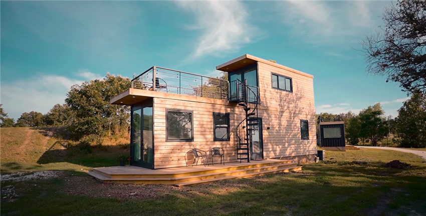 用集裝箱堆起兩層屋子,面積僅有44㎡,但設施卻一應俱全,兩室兩衛、客餐廳、休閑區都很寬敞,還有吧臺!