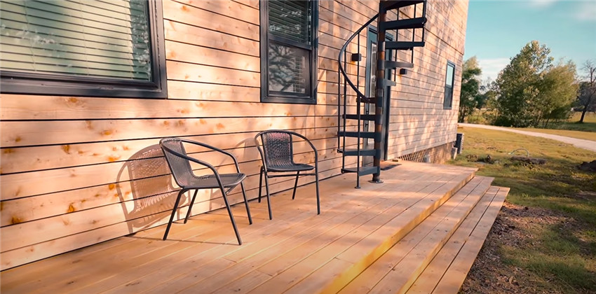 除了最后的部分,集裝箱的外面均鋪設了木板,像小木屋一般充滿了溫馨感~